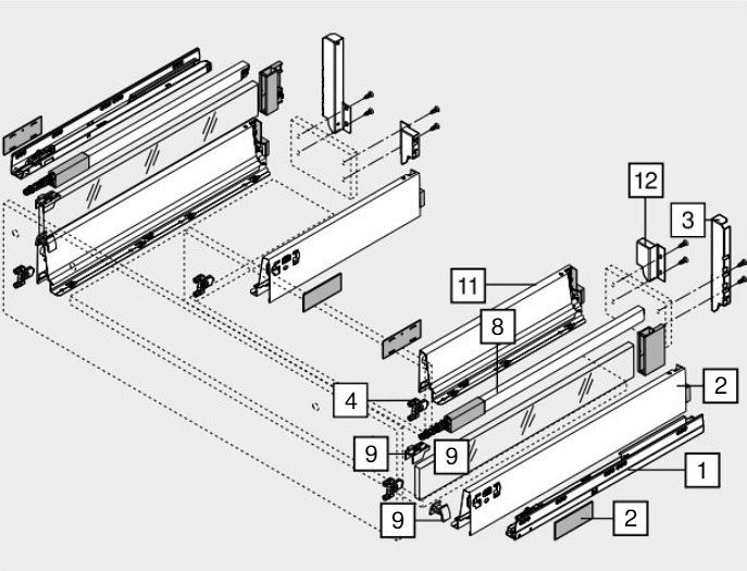 Крепление фасада стандартного ящика |
